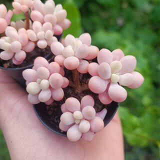Cũng như những đặc tính của sen đá sỏi khác, sen đá sỏi hồng tên gọi Pachyphytum Oviferum, được tìm thấy tại khu vực Tây Bắc Nam Mỹ và Mexico, thân mọng nước, lá là màu hồng phấn, trên mổi phiến lá chứa một lớp phấn mỏng. Nếu để chúng trong bóng râm sẽ có một màu xanh lục nhìn tương đổi khá giống sen đá sỏi xanh, nhưng khi nhận đủ nắng sẽ cho ra những tán lá cây màu hồng trong khá đẹp mắt.